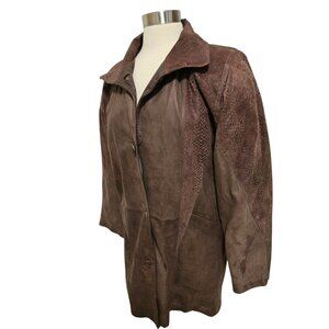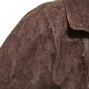 80s 90s Vintage Leather Jacket Womens Size Medium Brown Animal Print