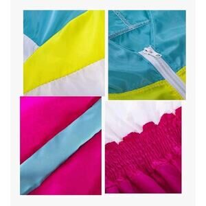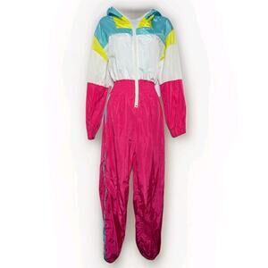 80s 90s Y2K Neon Colorblock Jumpsuit Ski Suit Jumper Womens Costume Party S M
