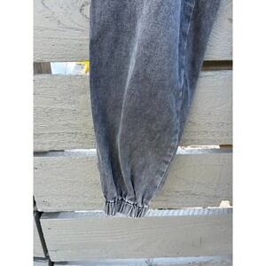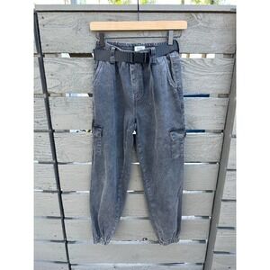 80s 90s vibe black denim cargo joggers with belted waist. Retro vibe. Sz 25