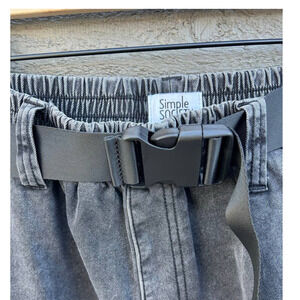 80s 90s vibe black denim cargo joggers jeans with belted waist. Retro vibe. Sz 25 (sz 0). Cute lightweight black denim joggers with nylon belt and plastic clip. Y2K Streetwear Casual
