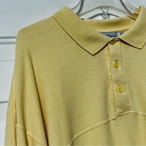 Vintage 80s 90s Perry Ellis Pastel Yellow Oversized Drop Shoulder 1/4 Button pullover Long Sleeve knit Top
