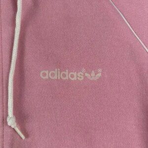 80s Adidas Hoodie Womens Medium Pink Trefoil Full Zip Long Sleeve Sweatshirt