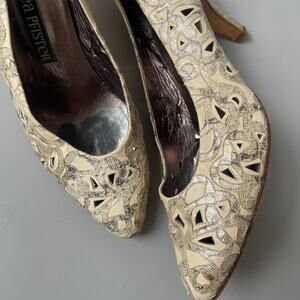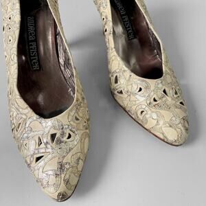 80s Andrea Pfister Lace Openwork Pumps Vintage Metallic Leather sz. 7 Snakeskin