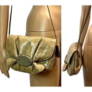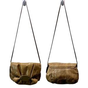 80s Aspects Tan Snakeskin Shoulder Bag Pouch | 10 x 7.5 x 2"