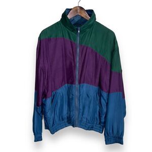 80s Athletic Works 100% Silk Colorblock Windbreaker Size M