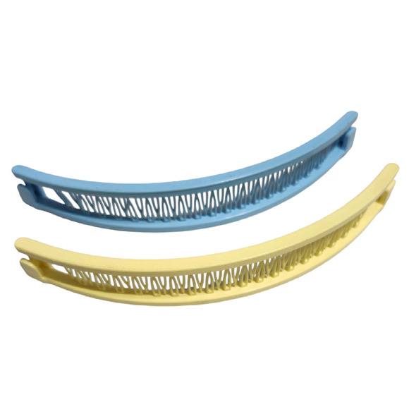 80s Bannana Clips Barrette set of 2 Yellow and Blue