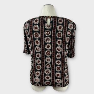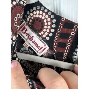 80s Bechamel Short Sleeve Block Print Blouse Top Brown Black Size 18 Career