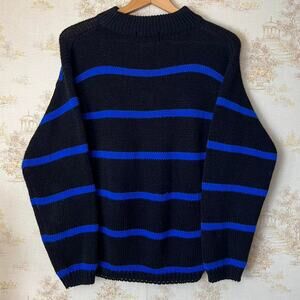 80s Black and Blue Striped Fair Isle Nordic Crewneck Sweater Size M