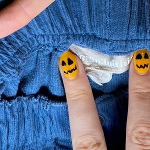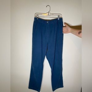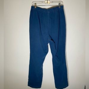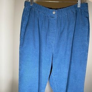 Blue corduroy elastic waist pants. 2 hip pockets.