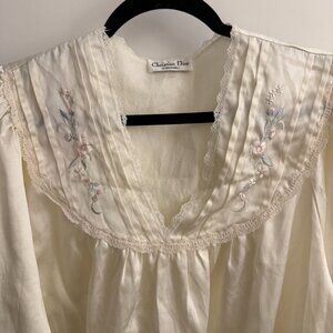 BEAUTIFUL Christian Dior nightgown with a fabric inner. Light embroidery on the lapel with lace. So gorgeous