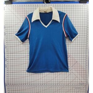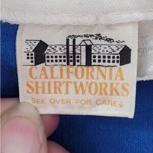 80s California Shirt Works Casual Collared Tee Blue/White Trim Vintage