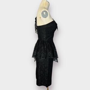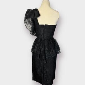 80s Climax Black Lace One Shoulder Party Dress Size XS