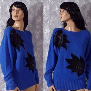 80s Cocktail Sweater Vintage 1980s Blue & Black New Wave Retro Angora Size Large