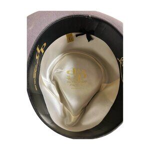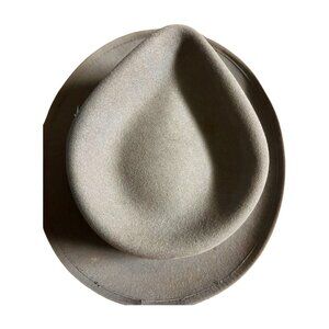 The 80's Dorfman Pacific co inc. men's Taupe Fedora is a vintage accessory crafted from a wool blend material in a classic Fedora style. Made in the United States during the 1950s, this tailored hat in size 7 1/8 features a fitted adjustment type for a comfortable and secure fit. Perfect for adding a touch of nostalgia to any outfit, this high-quality Fedora exudes a sophisticated and timeless charm.