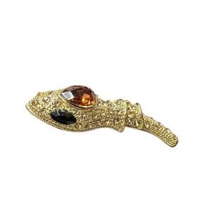 80s Egyptian Revival Vintage Snake Head Dangly earrings Post Style with black stone eyes and an amber stone on the head. The tail is articulated. 1 3/4" long. Very good used condition.