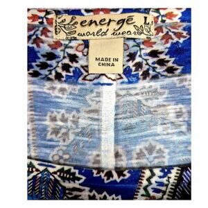 80s Energe world wear 100% Polyester Top Blue/Yellow Wide Waistband Sz L