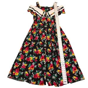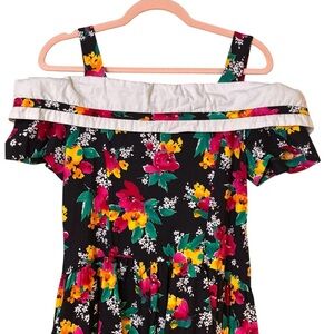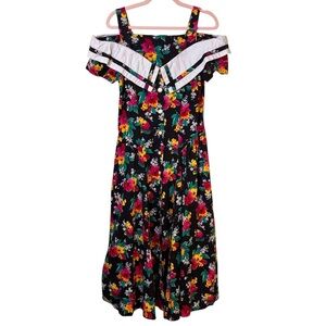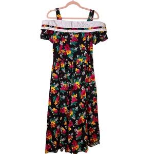 80’s Floral Off Shoulder Fit & Flare Party Colorful Midi Dress