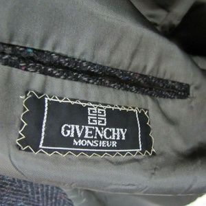 Vintage 1980s/90s GIVENCHY 40R Charcoal Gray Flecked Wool Sport Coat Blazer Leather