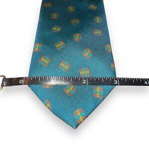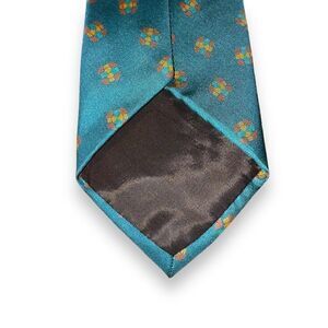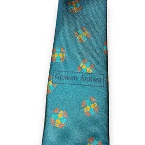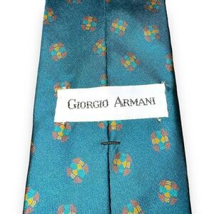 80s Giorgio Armani Teal Medallion Handmade in Italy 100% Silk Neck Tie