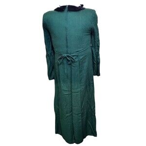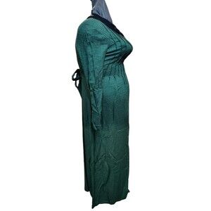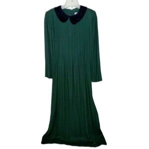 80s Green Buffalo Plaid Velvet Maxi Dress Prairie Holiday Whimsigoth Pleats Sz6