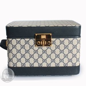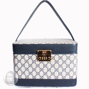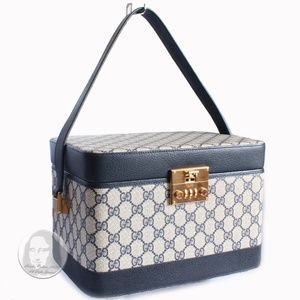 80s Gucci Train Case Vanity Carry On Travel Bag GG Logo Canvas Navy Leather