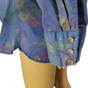 1980s Purple Floral Metallic Gold Western Pearl Snap Button Up Shirt H Bar C Size 15.5