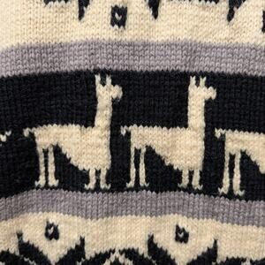 Description: Vintage 80s Hand Knit Alpaca Sweater, Mock neck, Tan black and gray, a bunch of little Alpacas or Lamas in the design, Peruvian style, perfect for Winter cold months, cute Lamacore, Alpacacore, oversized, Wool