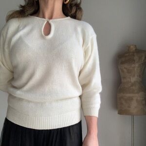 KEYHOLE SWEATER Size small A beautiful and simply elegant vintage sweater in a incredibly soft Angora rabbit fur blended with silk. It slips on over your head like satin slithering down your body.