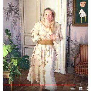 This dress (well, its twin,) was featured on the YouTube channel Chateau Unwrapped, episode titled "BACK AT LALANDE + Help for Ukraine"