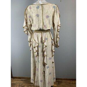 80s JEANNE MARC Gold Faerie Festival Ruffled Fantasy Princess Dress Fairycore