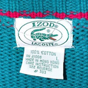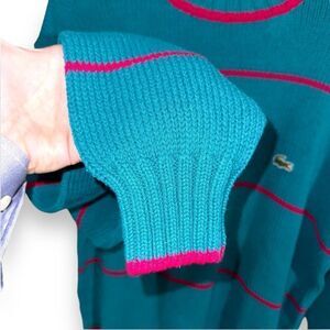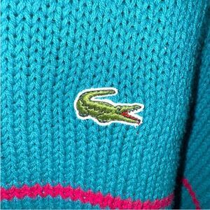 80s Lacoste Alligator Green Striped Chunky Knit Sweater Size L