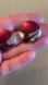 80s Laurel Burch earrings, burgundy enamel & gold tone metal, post back