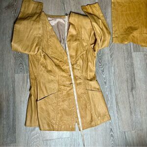 80s Leather zebra Print Tan Camel Embossed Blazer Midi Pencil Skirt Suit Set 10
