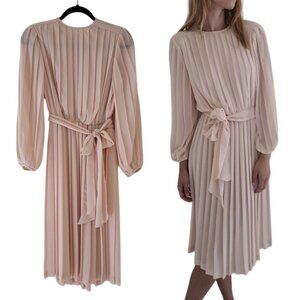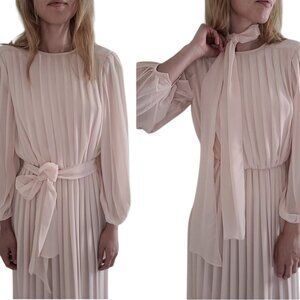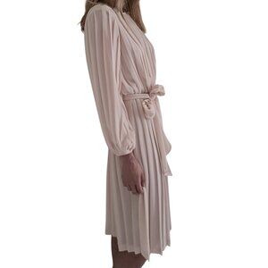 80s Light Pink Pleated Chiffon Long Sleeve Party Dress DINA BENNETT small/med