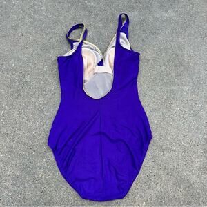 80s Longitude Royal Purple Ruched Faux Button Madonna One Piece Swimsuit 14 TALL