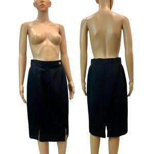 80's Louis Féraud Structured Black Pencil Skirt w Gold Sun Face Button | 28"