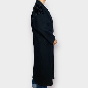 80s Maggie Lawrence Black Wool Blend Coat with Velvet Shoulder Detail