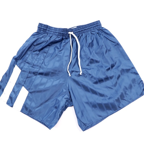 Vintage 80s Mens Medium Color Block Striped Nylon Running Soccer Shorts Blue USA