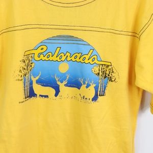 80s Mens XS Colorado Nature Print T Shirt Yellow