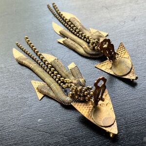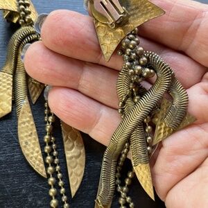 Clip on earrings, one of a kind artisan creations made of brass chains and sheet metal.