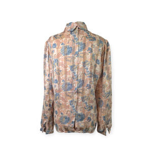 80's Pastel Floral Stripe Jacquard Blouse Michelle Stuart Size 10