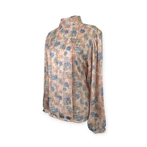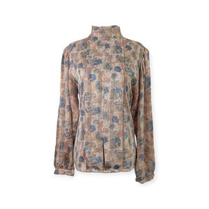 80's Muted Pastel Floral Stripe Jacquard Blouse Michelle Stuart Size 10 Paisley