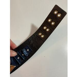 80s Nina Arjani Medium Leatherock Belt Black Blue Gold Leather