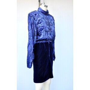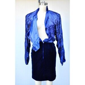 Vintage 80s Beaded SILK Blue Designer Dress by Paul Louis Orrier