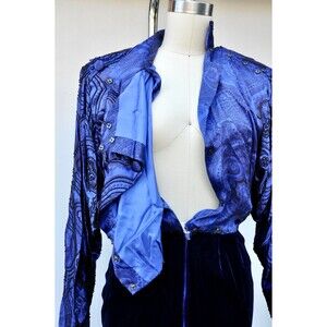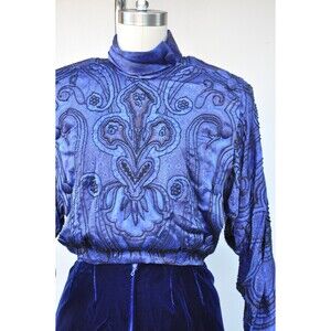 80s Paul Louis Orrier SILK & VELVET Dress Heavily Beaded Silk High End Designer