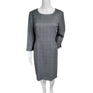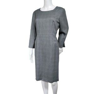 80's Pendleton 100% Wool Black & White Houndstooth Sheath Midi Dress 12 P