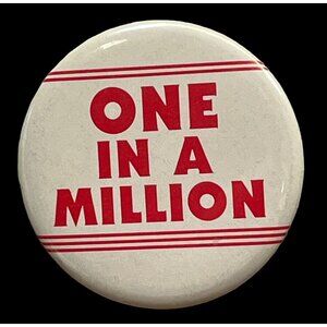 80s Pinback Button One in a Million Vintage Retro Pin Jacket Red White