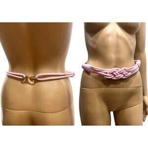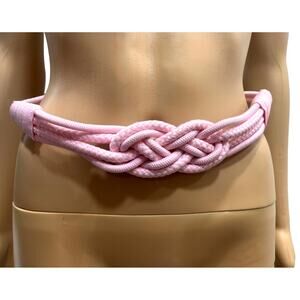 Soft baby pink 80s era obi style belt with knot design. Closes with hook, elastic ends. Nylon or similar cord