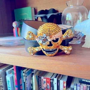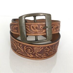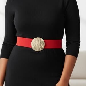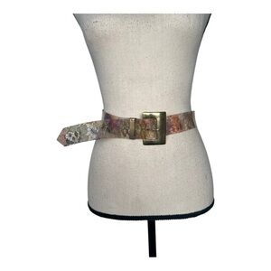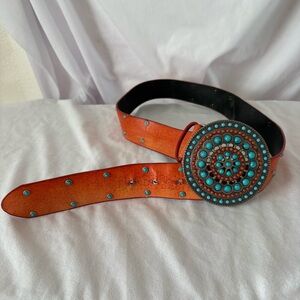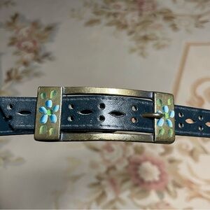 This belt is likely faux leather but in great condition.