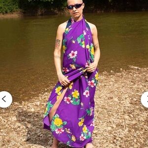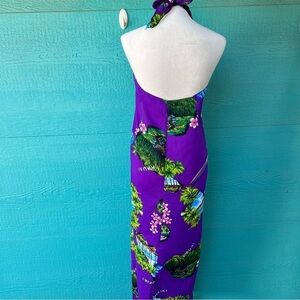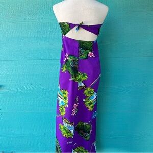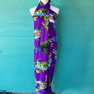 80s Purple Hawaiian Print Sarong 3-in-1 Dress One Size fits Most Vintage